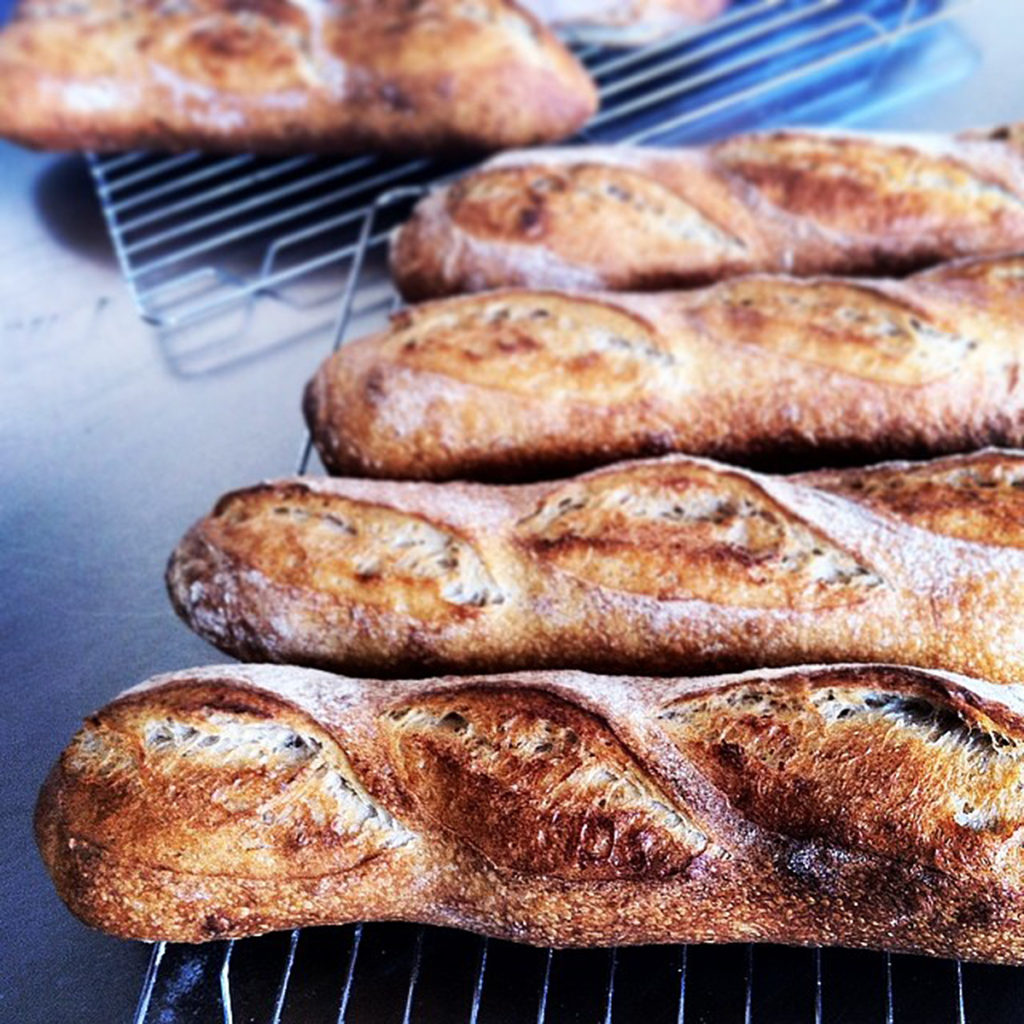 Cílovou skupinu serveru recept sice možná svojí „náročností“ poněkud rozčílil, vás ale nemusí. Na mou duší, nikoho nechci nutit k výrobě domácího pečiva, však mě znáte! Postup je stejný jako u spousty hnětených chlebů, které zabírají podobné množství času, ovšem s tím, že bagety kynou v jiném tvaru a kvásek je z droždí (jdou i kváskové, dělávám je jako vinohradský chleba s trochou vody navíc, ale mají jinou chuť – jsou to ty na titulní fotce).