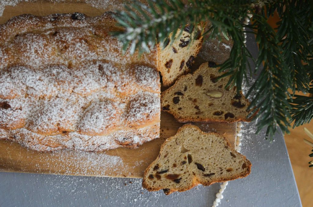Úspěch tkví nejen ve formě, ale hlavně v pomalém kynutí v lednici, případně použití prefermentu na způsob poliše (tedy „kvásku“ z pidi množství droždí). Díky tomu bezlepková mouka lépe nasákne a nechutná pak tolik pískově. Já vím, ty bezlepkové mouky, lépe řečeno mixy na kynuté těsto jsou spíš spíš směs škrobů, která není nijak zdravá, ale co si budem povídat, vánočkový požitek netkví v celozrnné pohance a čekankovém sirupu. Jak navíc vidí bystré oko – loňskou jsem pro ozvláštnění udělala asi ze 1/4 trochu „chlebovou“, tedy s celozrnnou moukou – a měla velký úspěch.