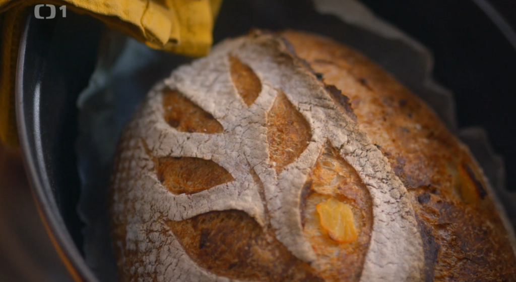 Pokud máte raději tmavší a křupavější chleby, můžete zapnout i horkovzduch — a dopékejte přibližně dalších 20 minut. Krájejte vlažný,