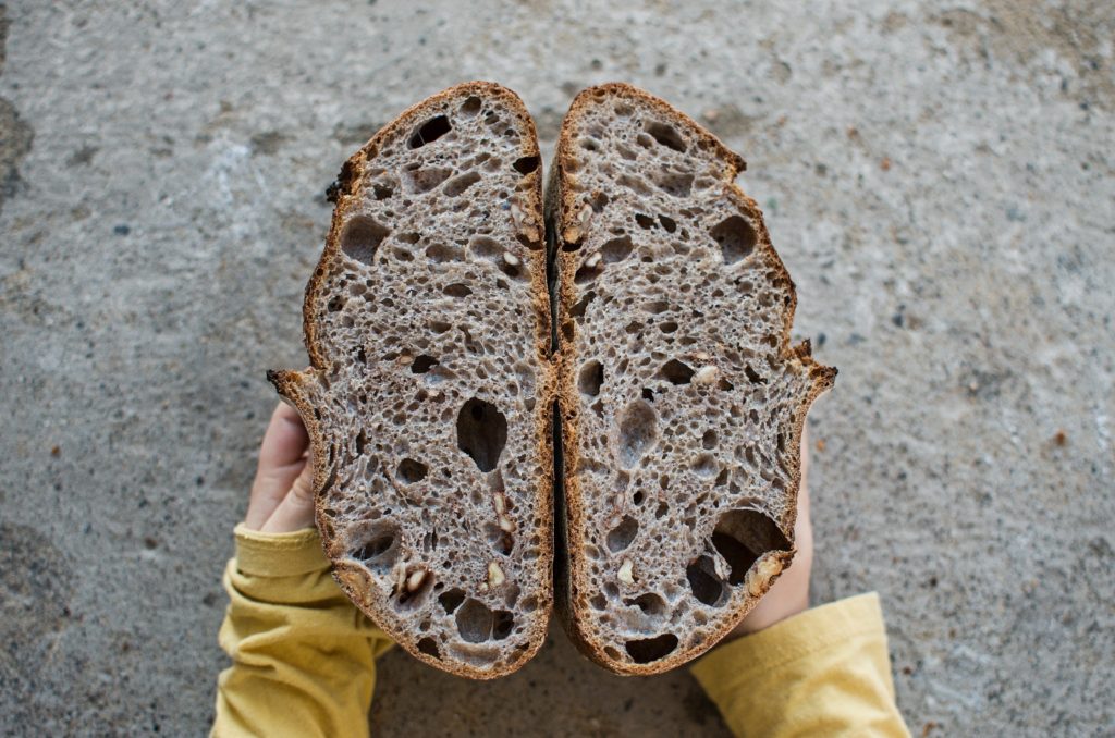 S doznívající zimou a nastupujícím jarem nabrat sil a pomalu vyklidit spíž. Nebo se aspoň přestat bát z nich brát, protože přece jen, nová sklizeň je aspoň o maličko blíž (ačkoli do podzima daleko, jasně). Asi s takovou myšlenkou vznikl tenhle chleba. Taky až před nedávnem k nám došly ořechy od dědy a zpracovala jsem postupně kaštanovou mouku, co mi dovezla kamarádka z letní dovolené v Itálii. Je hořko-sladko-karamelový, jakkoli bez cukru a pekla jsem ho asi 5x po sobě, jak moc mi chutnal.