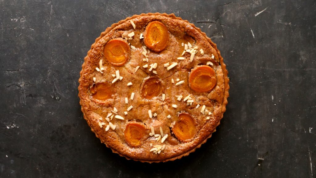Křehké těsto plníme ořechovou pastou zvanou někdy frangipane. Typicky bývá z rovného dílu mandlí, másla, vajec a cukru, ale skvělá je i z jiných typů ořechů a s trochou peckovitého ovoce, které přidá kyselý chuťový kontrast. S meruňkami nebo švestkami si rozumí výborně vlašáky, výborný je i makovo-mandlový, pistáciový krém s fíky nebo pomerančem je taky skvělý. Variovat můžete podle sezony i zásob mrazáku — ozkoušeno.